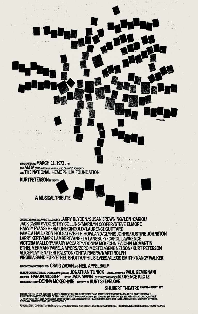 “‘Sondheim: A Musical Tribute’ was one of the five greatest evenings I’ve ever spent in the theatre. The others are: The 25th Anniversary of the Tony Awards, ‘Mary Martin & Ethel Merman Together on Broadway,’ Merman’s opening night in ‘Hello, Dolly!’ and the final performance of ‘Nicholas Nickleby.’ All of those are in a totally different sphere . . . But the timing of ‘Sondheim: A Musical Tribute’ was flawless. It’s unique, it’s special, it’s in a class all its own. I’ve thought of March 11, 1973 every March 11th since.” — Joshua Ellis, Broadway publicist.